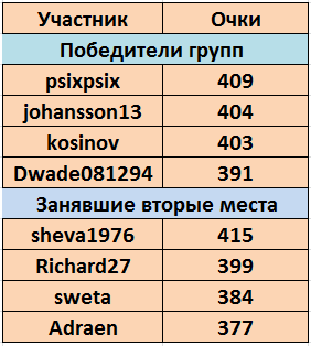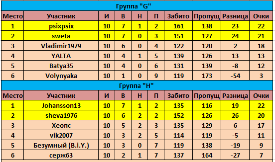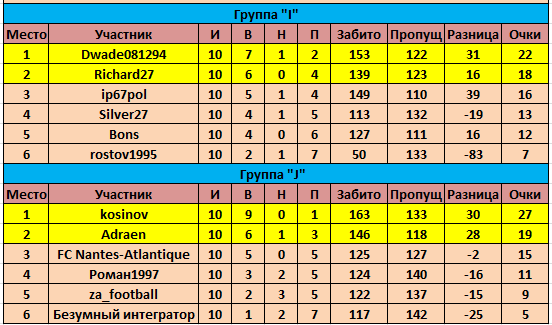 Турнирное положение в группах после сыгранного тура: