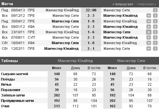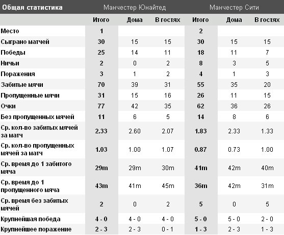 Это дерби станет 165-м по счету во всех турнирах. На счету "Манчестер Юнайтед" 69 побед, "Сити" 45, и 50 матчей завершились вничью.
