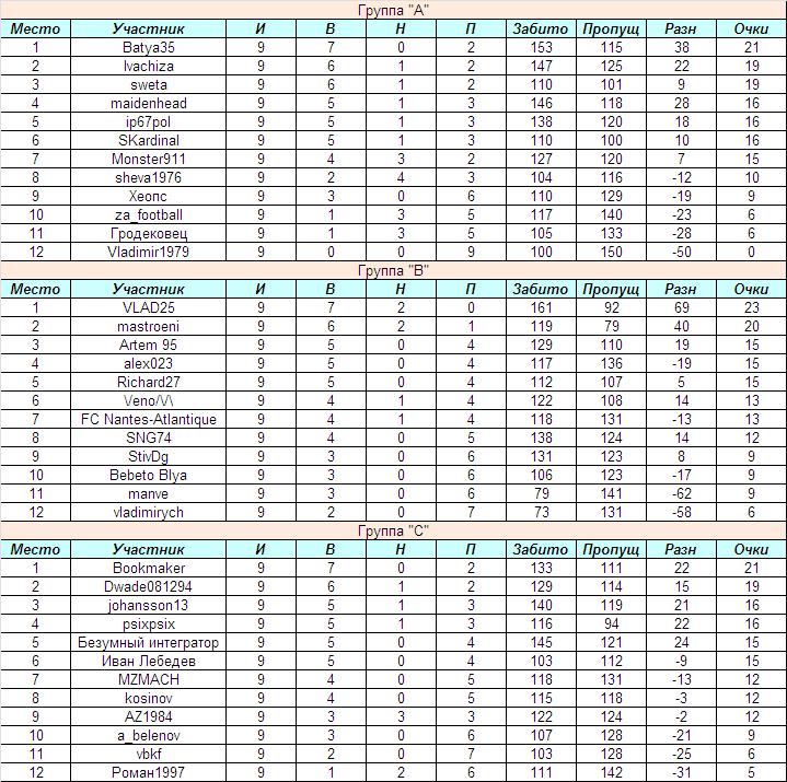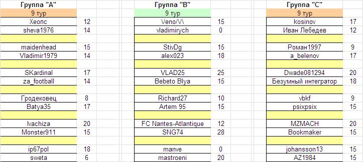 В рамках 23-го тура РФПЛ прошли матчи 9-го тура 2-го ГЭ Турнира по Чемпионату России, принесший следующие результаты игр в группах: