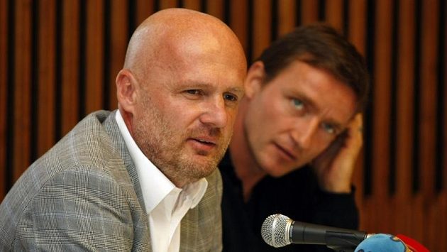 (Билек и Шмицер на пресс-конференции перед гостевым матчем в Дании. Фото: sport.cz)