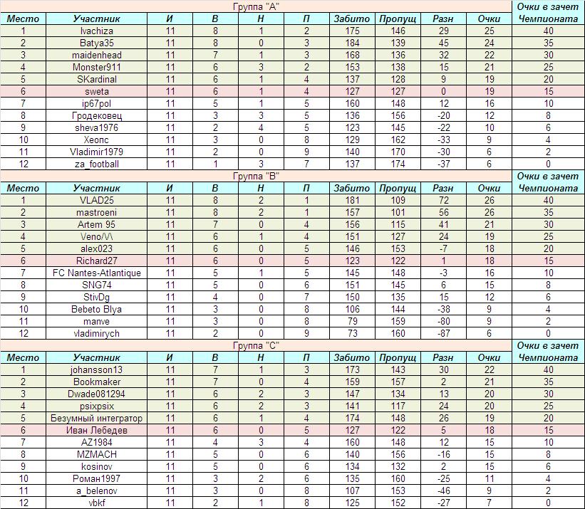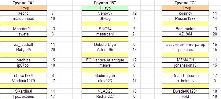 В рамках 25-го тура РФПЛ прошли матчи 11-го тура 2-го ГЭ Турнира по Чемпионату России, принесший следующие результаты игр в группах: