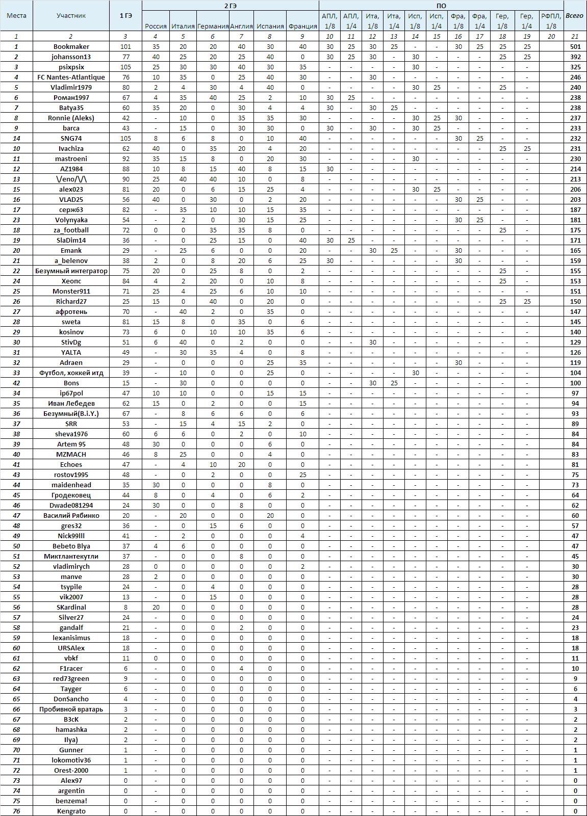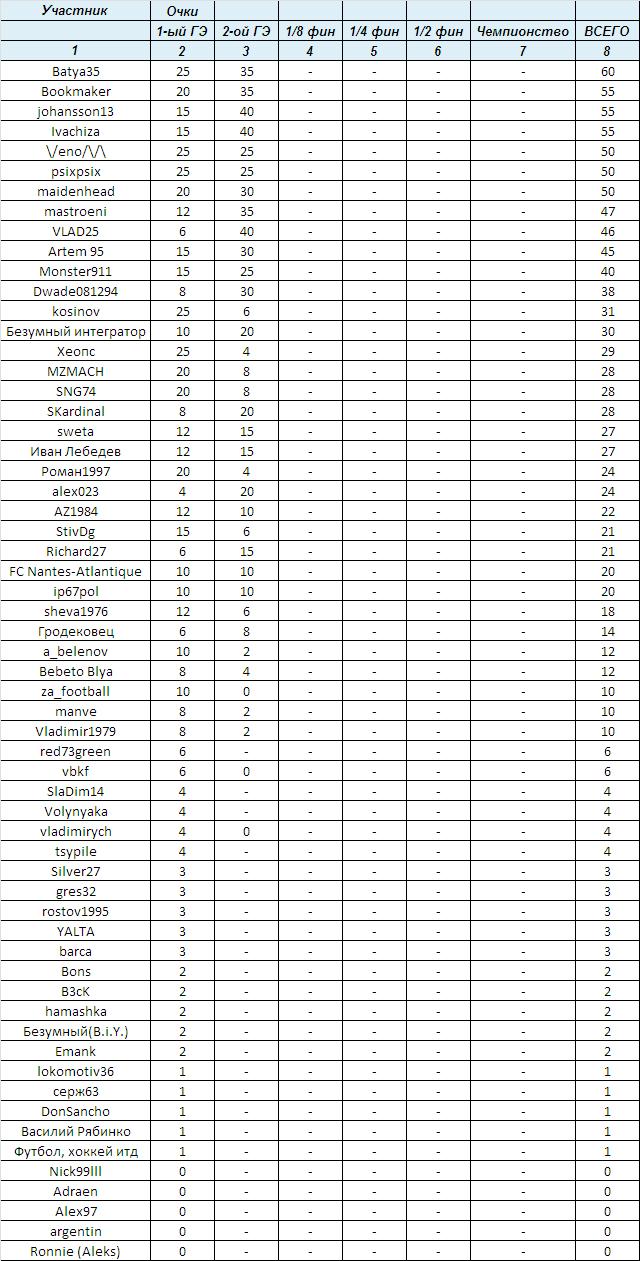 Таким образом, очковый зачет по РФПЛ выглядит так:
