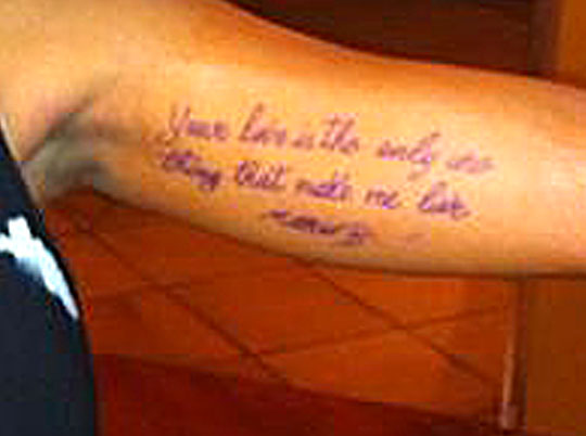 Они с Марио наведались в салон рисования по телу Спектрум Тату, где и была наколота надпись про неземную любовь к россонери на внутренней стороне левой руки Фанни.