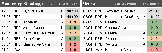 Что же до «Челси», то тут ситуация чуть посложнее. Синим удалось выбить «МЮ» со всех внутренних кубков, в то же время уступить командам куда проще. Однако, всего несколько дней назад подопечные Рафаэля Бенитеса вышли в финал Лиги Европы, что говорит о высокой мотивации в оставшихся матчах. «Тоттенхэм» поджимает, и брать 3 очка у «Юнайтед» «пенсионерам» просто необходимо. Получится ли?