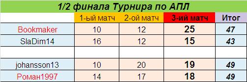 В рамках прошедшего 35-го тура Чемпионата Английской Футбольной Премьер-Лиги состоялись 3-и матчи 1/2 финала Турнира по АПЛ, которые завершились следующим образом: