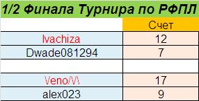 В рамках 29-го тура РФПЛ прошли матчи 1/2 финала Турнира по Чемпионату России, принесший следующие результаты: