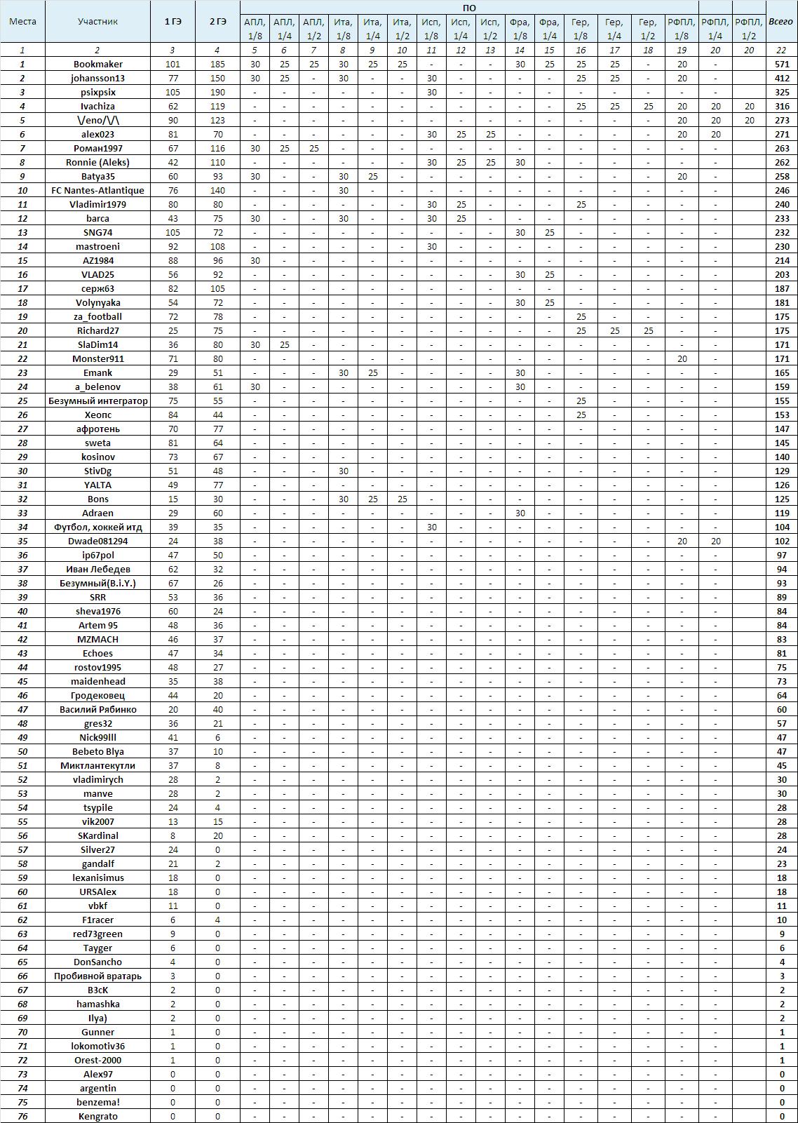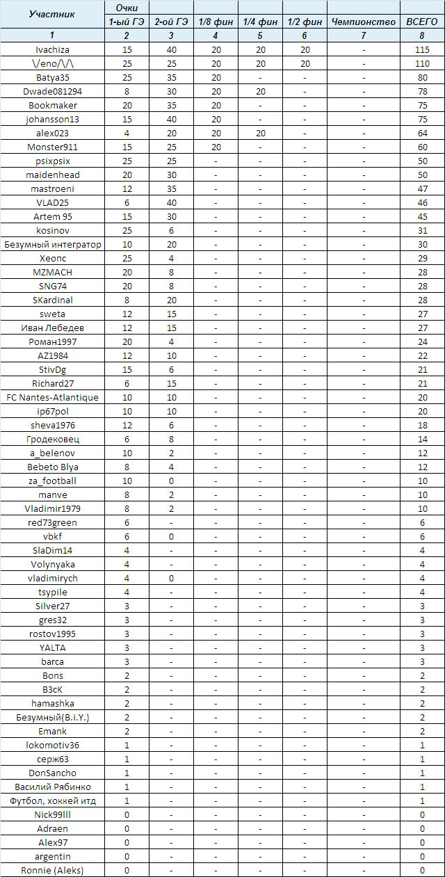 Вышедшие в Финал получают в зачет Гран-При по 20 баллов.