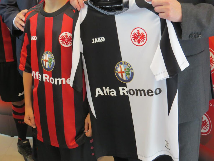 Вот, пожалуйста, местный производитель. Кто-нибудь может мне сказать, как это читается на немецком? Яко? Знаете в чём плюс маленьких компаний? А, да, я ж уже говорил. В индивидуальном подходе. А значит, и в уважении традиций и т.д. Айнтрахт одевается в Яко сколько я себя помню, и за это время ничего революционного в дизайне домашней формы не происходило. Стабильность - признак класса?