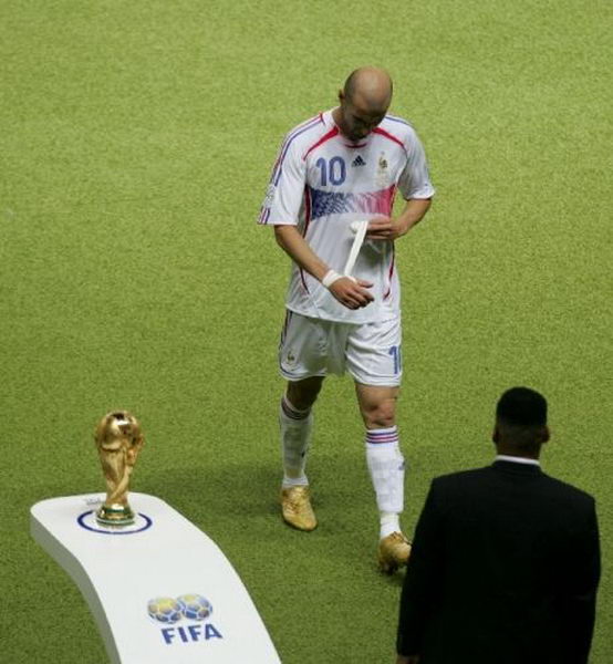 По мнению некоторых спортивных комментаторов, итог матча был предопределён на 109-й минуте, когда Зидан, лучший пенальтист команды, получил красную карточку за то, что ударил головой в грудь Матерацци. Главный арбитр не видел эпизода, но, посовещавшись со своим помощником Луисом Медина Канталехо, который наблюдал инцидент лично со своей позиции на бровке, показал Зидану красную карточку.