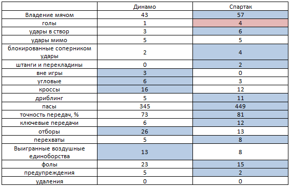 «Спартак» в этом матче имел неоспоримое преимущество, которое выразилось не только в счете, но и в большинстве статистических показателей. Можете убедиться в этом с помощью таблицы, представленной выше.