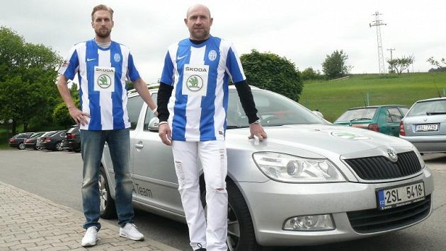 (Новички "Млады" Антонин Роса и Йиржи Штайнер перед своей первой пресс-конференцией в качестве футболистов болеславского клуба. Фото: sport.cz)