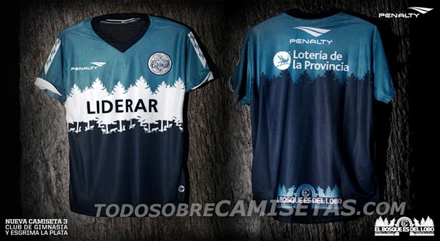 Ой, блястяще. Не так давно рассматриваемая нами фирма Пенальти явила миру на сей раз безусловный шедевр. Это третий комплект вышеуказанного клуба, который посвящён "Лесному Стадиону". Как я понял из текста (а словарь я взять, естественно, забыл), такое название носила из арена, когда клуб назывался "El Lobo" - Волк. Меня смущает, что в справочнике Гольдеса Химнасия называется Химнасией начиная с какого-то бородатейшего года. Но может, я путаю, потому что справочника под рукой тоже нет. Если вы в курсе - пишите в комментах!