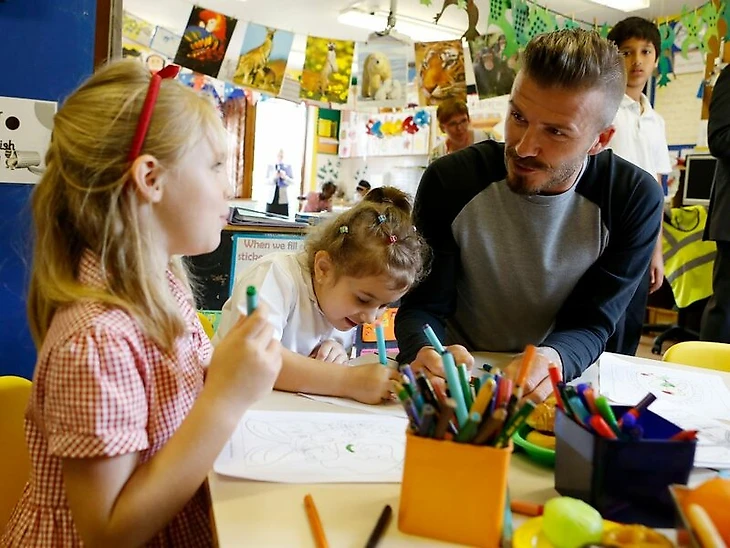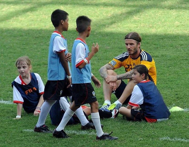 А вот так Бекс проводит досуг, ходит на матчи сыновей в обычном городском парке, общается с другими детьми и их родителями.