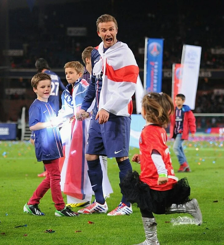 Отмечает чемпионство с сыном, на видео можно увидеть празднования по этому поводу и первый гол Бруклина Бекхема.