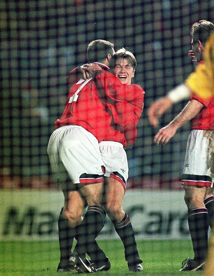 Первый гол пришелся на матч Лиги Чемпионов против «Галатасарая», 1994 год. В объятиях Эрика Кантона.