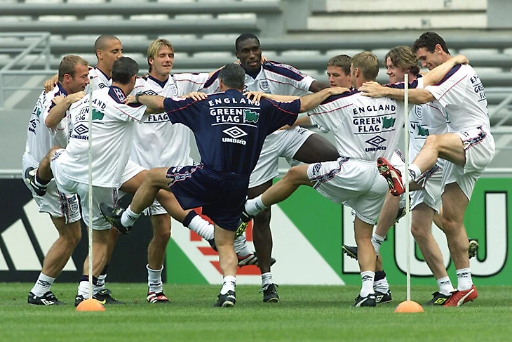 Тренировка перед игрой с Румынией, 21 июня 1998 года.