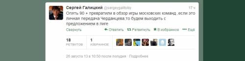 Вчера вечером президент футбольного клуба «Краснодар» Сергей Николаевич Галицкий на просторах популярной сети микроблогов Twitter затронул старую-добрую тему. А именно: распределение эфирного времени на спортивных каналах «НТВ Плюс» относительно клубов РФПЛ. Говоря проще, Сергей Николаевич вновь указал создателям программы «90 минут плюс» на то, что передача «промосковская», а провинции в ней не место, о провинциальных клубах говорят крайне мало и неохотно.