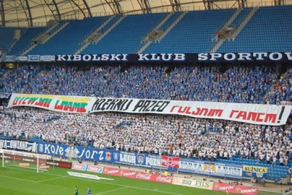 Фанаты Леха могут поплатится за банер "Литовский холоп, стань на колени перед польским паном" .Полиция польского города Познань задержала десяток болельщиков местного футбольного клуба за оскорбительный баннер. 8 августа, в матче третьего квалификационного раунда Лиги Европы, польский Лех принимал вильнюсский Жальгирис.Поляки выиграли - 2:1, но по сумме двух матчей дальше прошли литовцы. А фаны Леха поприветствовали соперника с баннером надписью: "Литовский холоп, стань на колени перед польским паном".