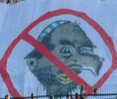 Ещё один знаменитейший пример идиотизма. Да, безусловно, фанатов "Тоттенхэма" называют "жидами", но неужели римские антисемиты полагают, что их оппоненты в силах освободить Палестину? Заметьте, данная демонстрация происходит в нескольких шагах от резиденции Папы Римского.