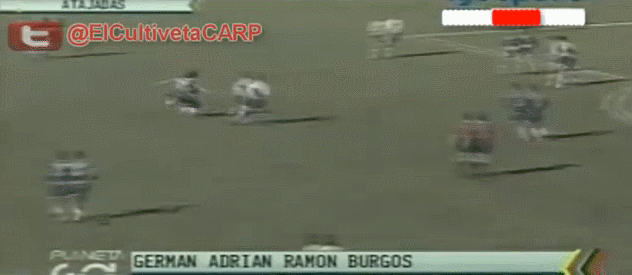 Вообще, по манере своей игры, Бургос очень напоминал хоккейного вратаря - уж больно часто ему доводилось отбивать мячи ногами. Вот еще один удивительный сэйв времен его выступления за "Ривер Плейт":