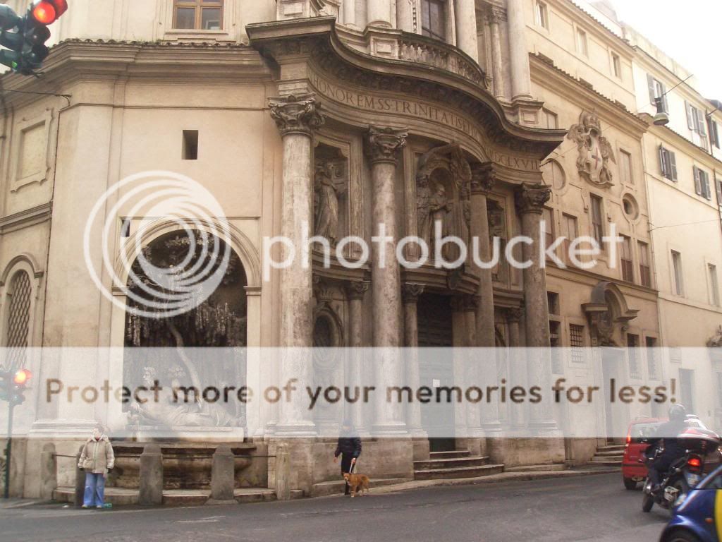 Отсюда я направилась прямиком к Четырем Фонтанам, рядом с которыми приютилась махонькая церквушка работы Борромини (это тот самый второй творец римского барокко, с которым Бернини вечно не ладил). Подробности, впрочем, я тоже прочла уже после поездки, но торжество плавных линий, которое являет собой симпатичный фасад, забыть или перепутать невозможно: