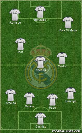 Буду настаивать на том, что схема все же ближе к 4-3-3, где Иско ярковыраженный атакующий полузащитник, но при этом я бы не сказал, что он поднападающий. Если с Арбелоа все в порядке,то Карло Анчелотти скорее всего выставит следующую схему: