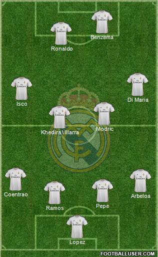 ОХ КАК ОНО! СХЕМА 4-4-2 ! Как так?! Все матчи я думал,что мы играем по схеме 4-3-3, где Иско - атакующий полузащитник. Но Анчелотти твердит совершенно обратное: схема 4-4-2, при чем во всех официальных матчах команды. Схема это конечно отнисительность, но сам факт того что схема 4-4-2 многое меняет. Значит Иско играет ближе к левому флангу, потому что он левый полузащитник. А Роналду оттянутый левый форвард. В общем, думаю состав будет таким: