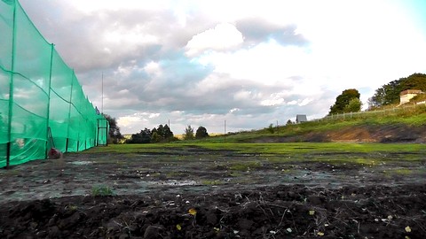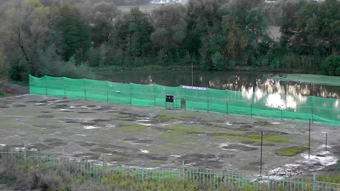 Завершили посев травы, установили заграждение со стороны пруда (боковая сторона поля находится в 10 метрах от водоёма), установили столбы для заградительной сетки за воротами, флагшток и вышку для видеосъёмки. Прорыли арык для стока воды. В настоящее время работы приостановлены до весны.