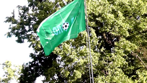 Рядом с полем находится частный дом, поэтому высота за воротами с одной стороны - четыре метра, с другой пять метров (там, где дом).