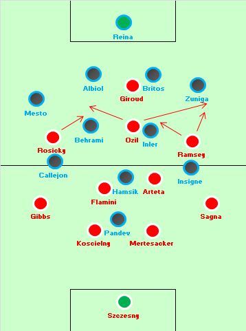 Арсен Венгер выпустил 5 номинальных центральных полузащитников в стартовом составе, «Наполи» же регулярно пропускал опасные атаки через левый фланг – тактический обзор в блоге «Англия, Англия».