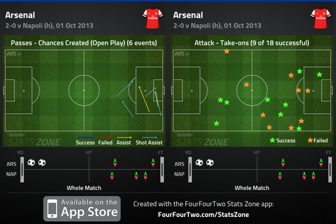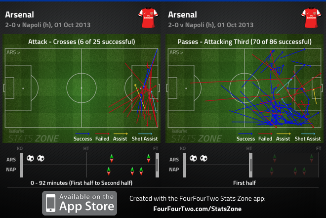 Такое разнообразие является относительно редким явлением для «Арсенала» в последние несколько сезонов – зачастую разнообразно их игра проходит лишь слева, где такие игроки как Касорла, Росицки и (когда-то и не очень долго) Йосси Бенаюн умно взаимодействовали с игроком центральной зоны, справа же, как правило, использовался более прямолинейный вариант в лице Тео Уолкотта.