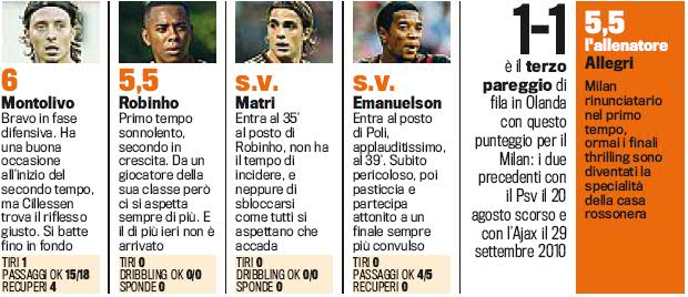 Матри - б/о. Вышел вместо Робиньо за несколько минут до конца и не имел времени не то что забить, но и просто войти в игру.
