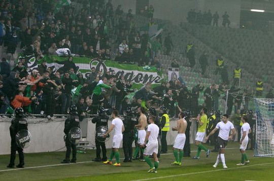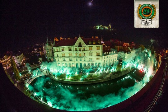 Фаны люблянской Олимпии в игре против Целие отметили 25-летие своей организации.