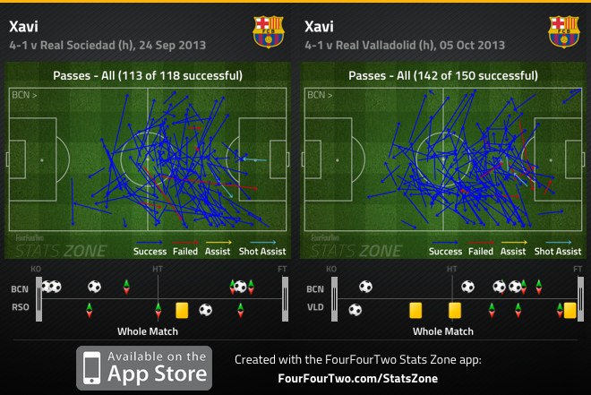 Хави и Иниеста вместе выходили в стартовом составе лишь в половине матчей – трех из восьми в Ла Лиге (с «Осасуной» оба вышли в старте, прим. пер.), одном из двух лигочемпионских, одном из двух в Суперкубке Испании.