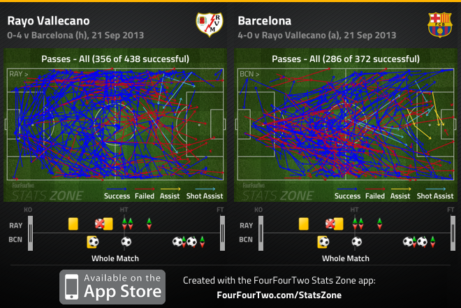 У Мартино нашлось объяснение: «Игроки «Райо» хорошо прессинговали и не давали нам играть в короткий пас. Пришлось играть длинными передачами, и иногда, чтобы доставить мяч в определенные зоны, это необходимо». Пако Хемес, согласившись, добавил, что его команда больше владела мячом за счет «высокого прессинга, особенно центральных защитников». Как известно, под давлением оборона каталонцев теряет мяч значительно чаще.