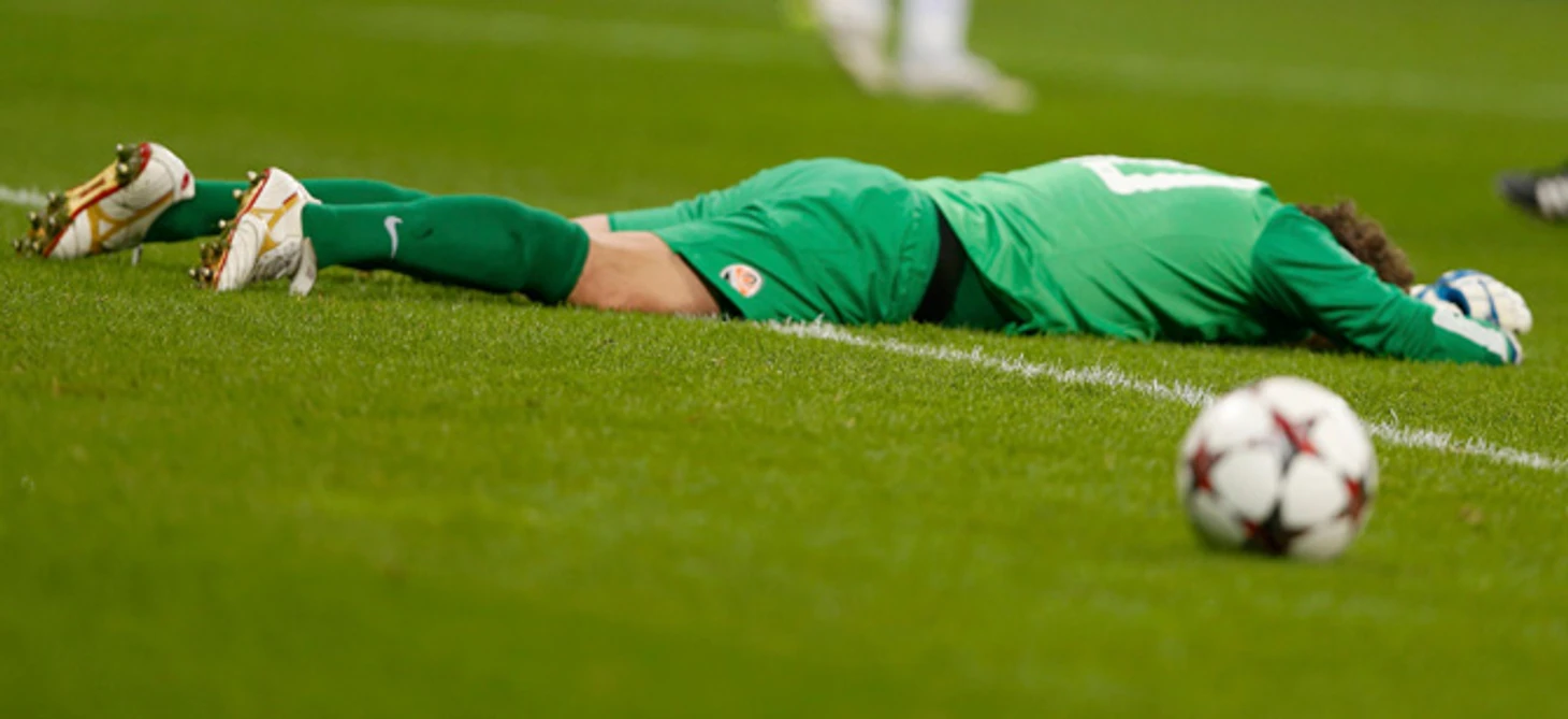 Примерно так бы мог проходить школьный урок после вчерашнего  матча в Харькове, Киеве или в микрорайоне Зеленый Луг города Минска. И все, надо сказать, совершенно по делу. При всем ужасе и моральном терроре, сопровождавшем игру защиты «Шахтера», оправдать вратаря в случае с первым и – особенно! – с четвертым голом, уж простите, никак нельзя.
