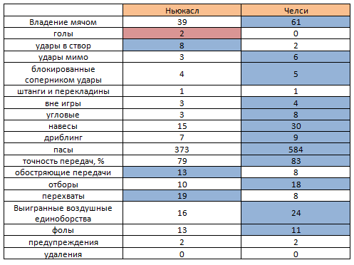 «Ньюкасл» - «Челси». Статистический анализ матча