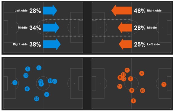 Не стоит винить нападающих во всех смертных грехах, у "Челси" были явные проблемы с созиданием. Мяч в основном разыгрывался защитниками: Терри выполнил 72 паса, а Луис 79, в сумме два центральных защитника раздали почти 26% все пасов. Таким образом, 61% владения команды Моуринью практически не имеет никакого значения, так как мяч находился вдали от ворот соперника.