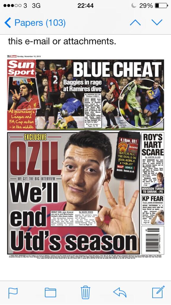 что интересно все предъявляют Озилу какие то претензии за слова которые какой то рускоязычный автор пририсовал к фрагменту с его видеоинтервью. с таким же успехом можно было написать "А в понедельник после игры с МЮ я покорю вселенную"