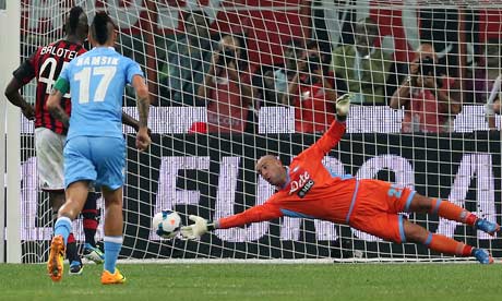 Второй мерой по повышению надёжности неаполитанской обороны стал переход от схемы с тремя защитниками к схеме с четырьмя дефами. Правда, эта мера имеет побочные эффекты: во-первых, крайние латерали Наполи Маджо и Зуньига (как и его соотечественник и конкурент по позиции Армеро) умеют и очень любят ходить в атаку, теперь же, когда заниматься они должны в первую очередь действиями оборонительными, неаполитанская атака теряет широту, мощь и разноплановость. Во-вторых, много лет играя по схеме 3-5-2, края Наполи привыкли, что, в случае чего, сзади их подстрахуют защитники, а теперь страхующих не трое, а всего двое, а моментально отучиться от привычки не получится. В-третьих, превращение Зуньиги и Маджо из игроков только на половину оборонительных в оборонительных в первую очередь произойдёт не сразу и не совсем гладко- со всеми вытекающими. В общем, проблемы в обороне активно решаются, но ещё не решены. Это обстоятельство пока не позволяет назвать Наполи полноценнной сбалансированной командой. Но это только пока! Команды Бенитеса всегда отличались целостной поставленной игрой, включающей в себя в том числе и надёжные действия в обороне. В конце концов, Наполи может играть и по системе "забейте нам, сколько сможете- мы забьём вам, сколько хотим", как это было в прошлом сезоне в Турине и в нынешнем сезоне в Вероне. Что же касается вратарской позиции, то Де Санктис многое дал Наполи, но положительно впечатлял в последнее время всё меньше и меньше. Факундо Ронкалья, забивший Моргану со своей половины поля, указал вратарю, что пора бы уже на пенсию собираться. Де Санктис совету внял- благо ближайший дом престарелых оказался совсем недалеко от Неаполя- в Риме. А на замену ему был приобретён Рейна, лучшие годы своей карьеры проведший именно под руководством Бенитеса в Ливерпуле. Вспоминаются в первую очередь три подряд золотые перчатки, вручаемые лучшему вратарю АПЛ- их Хосе брал в сезонах 2005-06, 2006-07, 2007-08, выигранные серии пенальти в полуфинале Лиги Чемпионов 2006-07 против челси и в финале Кубка Англии 2005-06 против Вест Хэма. В последнее время было заметно, что Рейна исчерпал себя, как игрок Ливерпуля и ему явно нужно было сменить обстановку и переход в Наполи к Рафе- лучшее, что могло случиться в этой ситуации. Рейна сполна оправдывает неаполитанские авансы, играет он классно, регулярно совершает потрясающие сэйвы. В этом сезоне Пепе- один из лучших игроков Наполи. Ну а на подмену Рейне был приобретён молодой бразилец Раффаэл, который будет учиться у опытного испанца и расти, тренируясь бок о бок с ним.