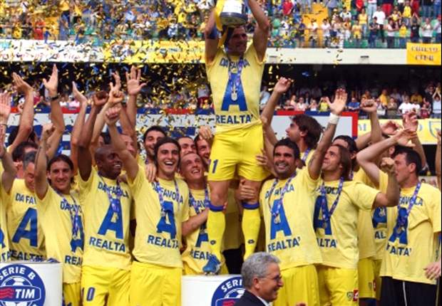 Футболисты Кьево празднуют победу в Серии Б и выход в Серию А в 2008 году