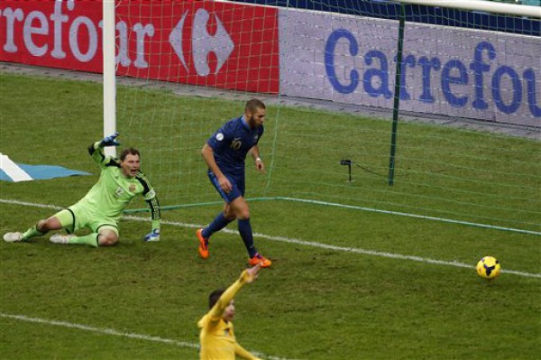 На 22-й минуте французы устали смотреть на такое представление и решили забить - Вальбуэна подал, украинцы снова решили максимально долго не выбивать мяч из своей штрафной, мяч отскочил к Рибери, тот мощно пробил в угол, но Пятов с ударом справился, а вот на добивание подоспел Сахо и с острого угла загнал мяч в сетку.