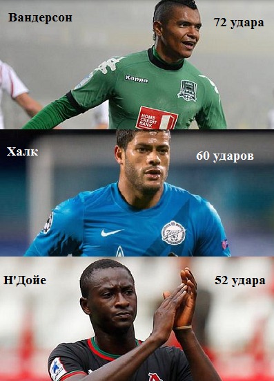 Идем дальше. Н’Дойе чаще других из четверки лучших бомбардиров примеряется к воротам соперника. Он наносит в среднем по 3,1 удару за встречу. Даме – ярко выраженный правша, 7 голов он забил правой и еще трижды послал снаряд в сетку головой. Также Н’Дойе достаточно уверенно чувствует себя на втором этаже, он выигрывает 46% всех воздушных единоборств. Как уже было сказано, форвард «Локомотива» не стесняется бить по воротам и по данному показателю он идет на третьем месте среди всех игроков. Лидирует Вандерсон с 72 выстрелами, в след за ним расположился Халк, у которого 60 ударов.