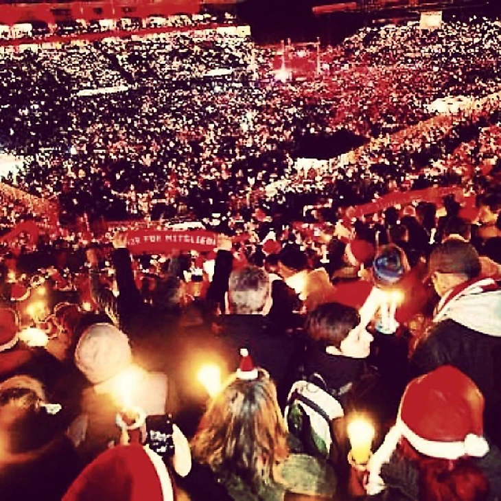 Более 20 тысяч фанатов клуба второй бундеслиги уже 11 лет подряд собираются на арене, чтобы спеть рождественскую песню.