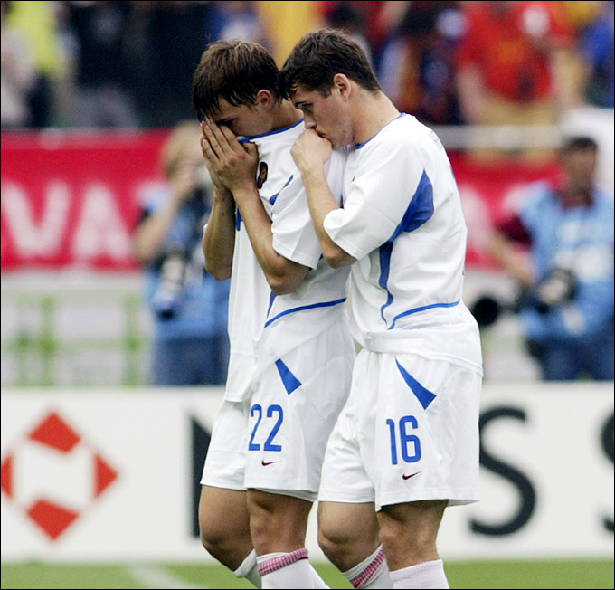 Дмитрий никогда не был единоличным лидером команды (кроме ЧМ-02, когда он создал все четыре гола, забитые сборной, и был просто лучшим в команде), он был отличным игроком для командной игры. Следовательно, от него изначально требовали не совсем то, что должны были. А там еще и приходит Бышовец и выгоняет всех старых друзей из команды и ставит Сычева на фланг…