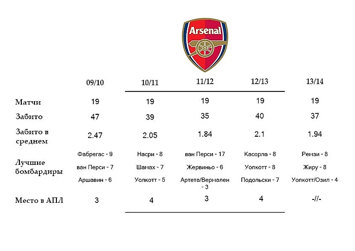 Кроме того, «канониры» наконец-то преодолели серию неудачных стартов, которые имели место в сезонах 11/12 и 12/13, когда летом им приходилось расставаться с ключевыми игроками и затыкать дыры перед самым дедлайном.