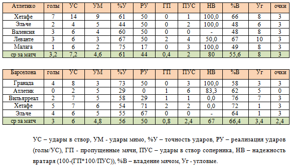 Роль Хави и Иньесты в сегодняшней «Барселоне» не так велика, как это было раньше. Хави по-прежнему является лучшим распасовщиком, он выполняет по 89 передач в среднем за встречу, вот только остроты в его действиях заметно поубавилось. Хави создал всего 23 момента для партнеров у того же Габи из «Атлетико» на 1 созданный момент больше. Иньеста стал менее фееричным, на его счету всего 1 гол и 2 ассиста, в основном он занимается диспетчерскими обязанностями и раздает по 66 передач за игру (третий в команде).