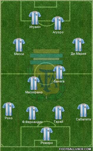 Несмотря на потерю игровой практики, Сабелья по-прежнему доверяет первый номер Ромеро. Линия обороны часто варьировалась, свой шанс получали Колоччини, Ронкалья, Басанта, Отаменди, но оптимальным сочетанием является Рохо-Гарай-Фернандес-Сабалета, именно эта четверка чаще всего играла в ответственных матчах. Хавьер Маскерано-стержень сборной, его место сомнению не подвергается, а вот рядом с ним можно ожидать помимо Эвена Банеги Фернандо Гаго или Лукаса Билья. В атаке кроме главных звезд есть также Альварес, Соса, Лавесси, Паласио, Ламела и автор одного из самых красивых мячей чемпионатов мира Макси Родригес.