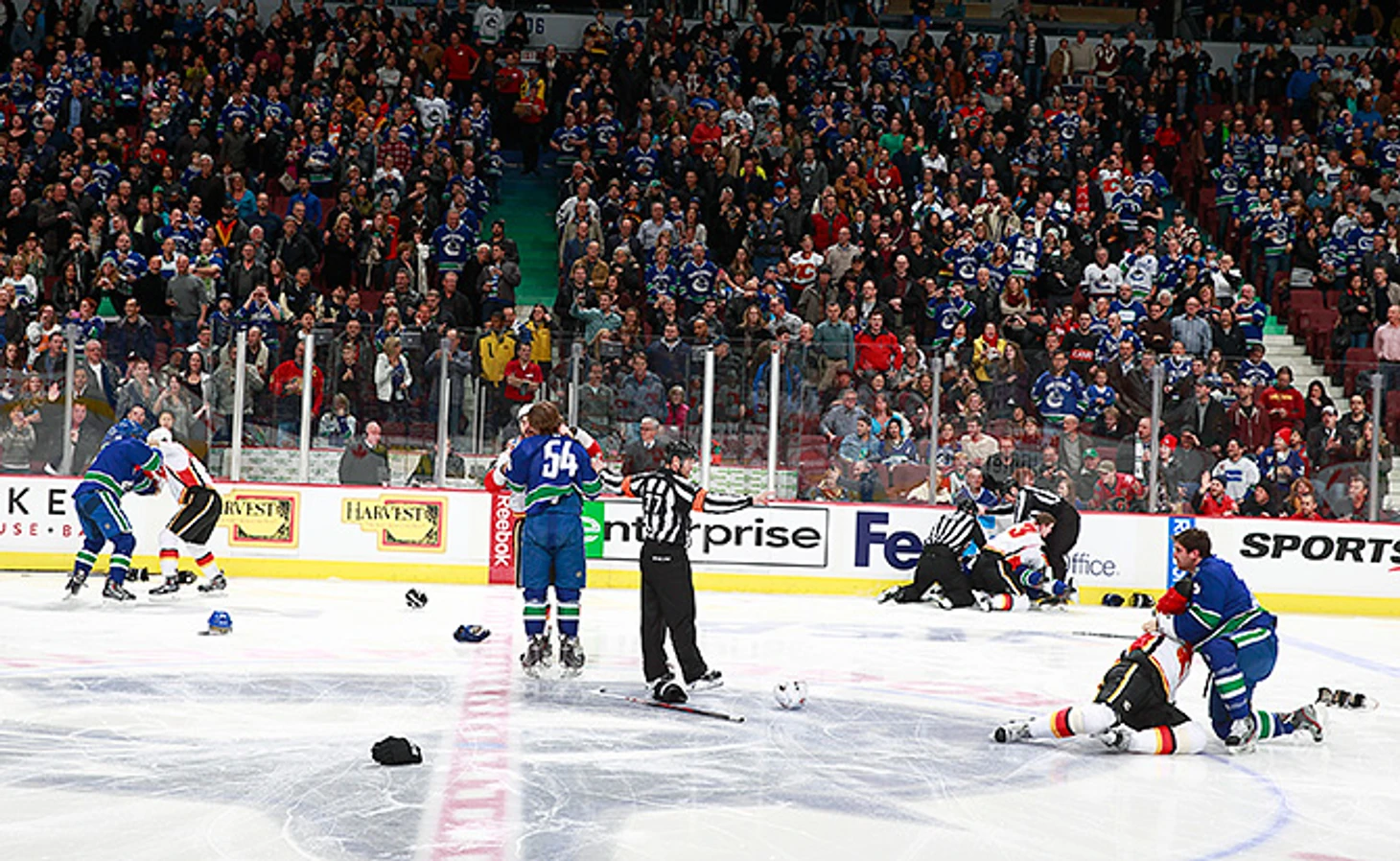 Матч «Ванкувер» – «Калгари» начался с массовой драки стартовых пятерок и вратарей.