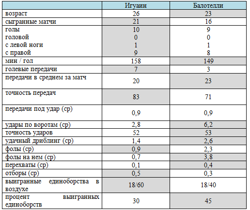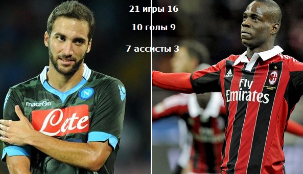 Наверное, главной дуэлью станет противостояние Игуаина и Балотелли. Сопоставим показатели лучших бомбардиров команд.